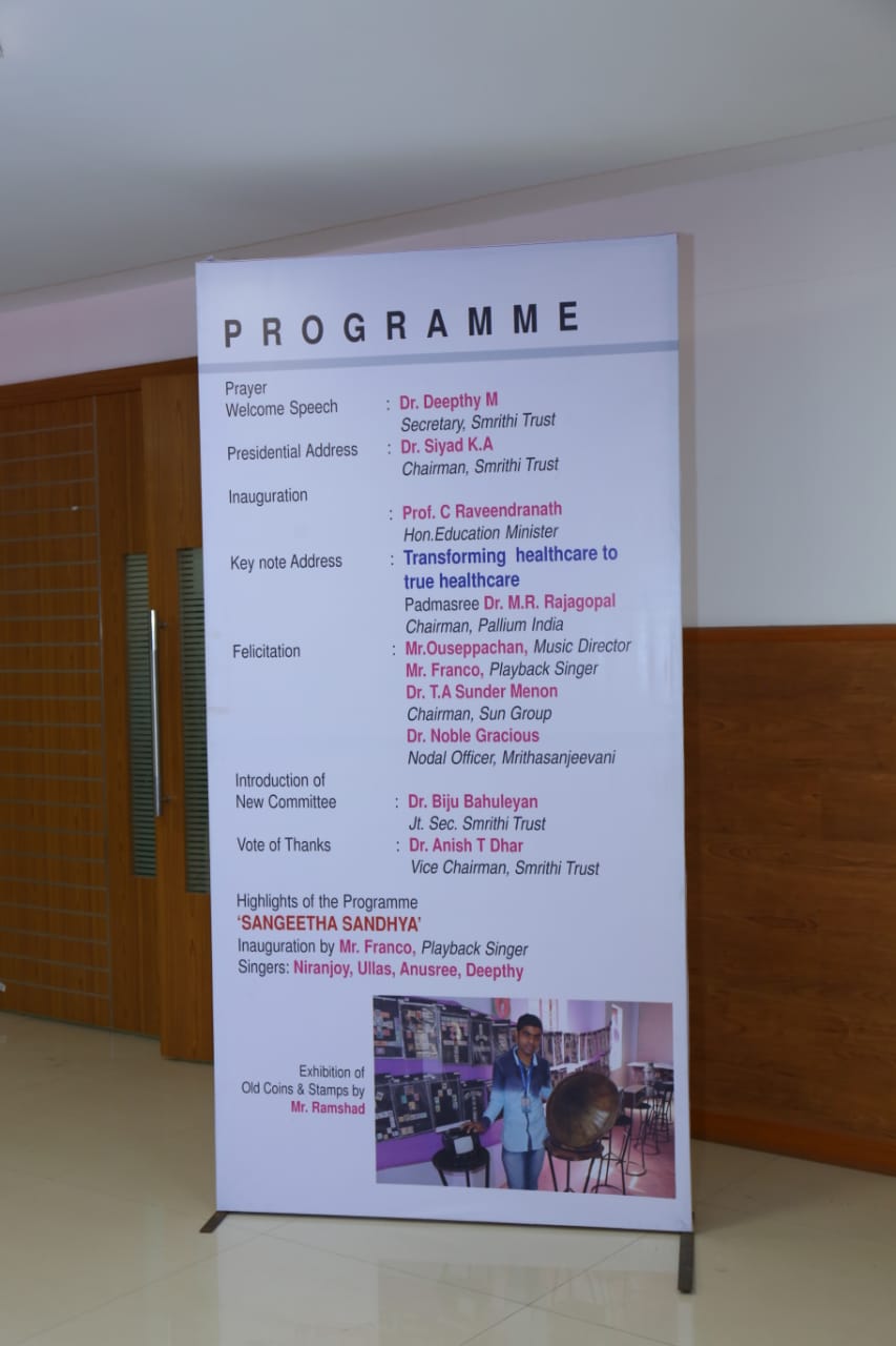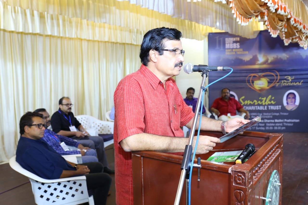 Key note address by Padmasree Dr M R Rajagopal. A cheque for Rs 25000 handed over to Dr Rajagopal for Pallium India from Smrithi By Dr Gno as a token of our gratitude.